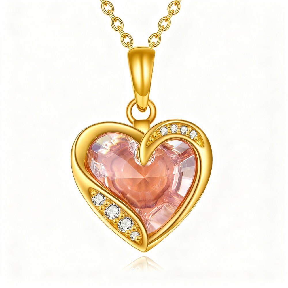 Este exquisito collar colgante está elaborado en Oro de 10 quilates de alta calidad y luce un delicado diseño de corazón adornado con brillantes cristales. La pieza central, una impresionante circonita cúbica en forma de corazón, añade un toque de brillo que captura la luz con belleza. Ideal para mujeres que aprecian la sofisticación y el encanto, este collar es un accesorio versátil que complementa cualquier look. Ya sea para una ocasión especial o para añadir un toque de glamour a tu día a día, este collar colgante de corazón te garantiza una elegancia y elegancia inigualables. Regala lujo y romance, o consiéntete con esta impresionante pieza que encarna la belleza atemporal.