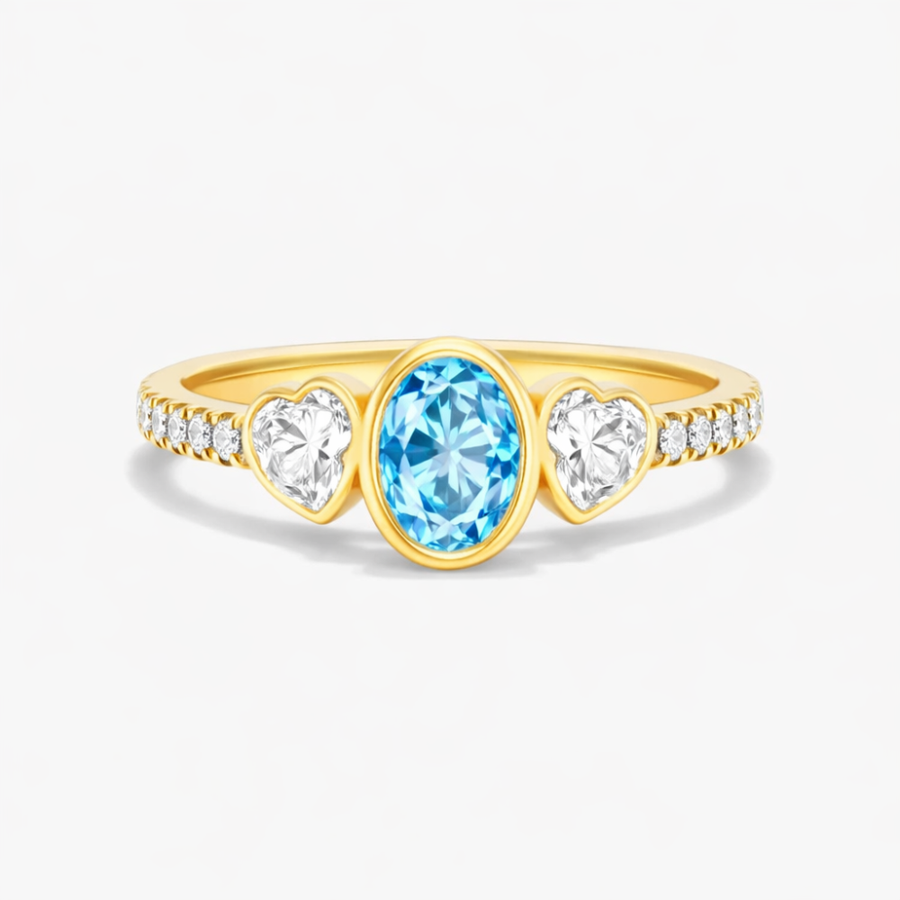 Celebra el amor con nuestro anillo de compromiso de oro 10K, con una deslumbrante moissanita ovalada central y acentos personalizados de piedras de nacimiento. Este diseño vintage fusiona elegancia atemporal y sofisticación moderna.
