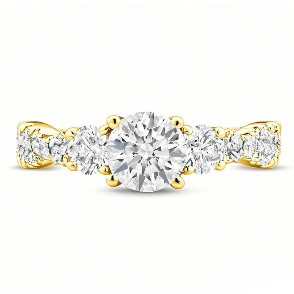 Con una artesanía avanzada, este anillo combina una belleza impactante con durabilidad, lo que lo convierte en una pieza preciada por muchos años. La piedra central de moissanita se complementa con 1,25 quilates de deslumbrantes piedras laterales de moissanita, lo que le proporciona un atractivo visual extraordinario y una intensidad inigualable. Su excepcional corte y simetría garantizan que esta pieza capture la luz con belleza desde cualquier ángulo, convirtiéndola en el anillo de compromiso perfecto para la mujer moderna.