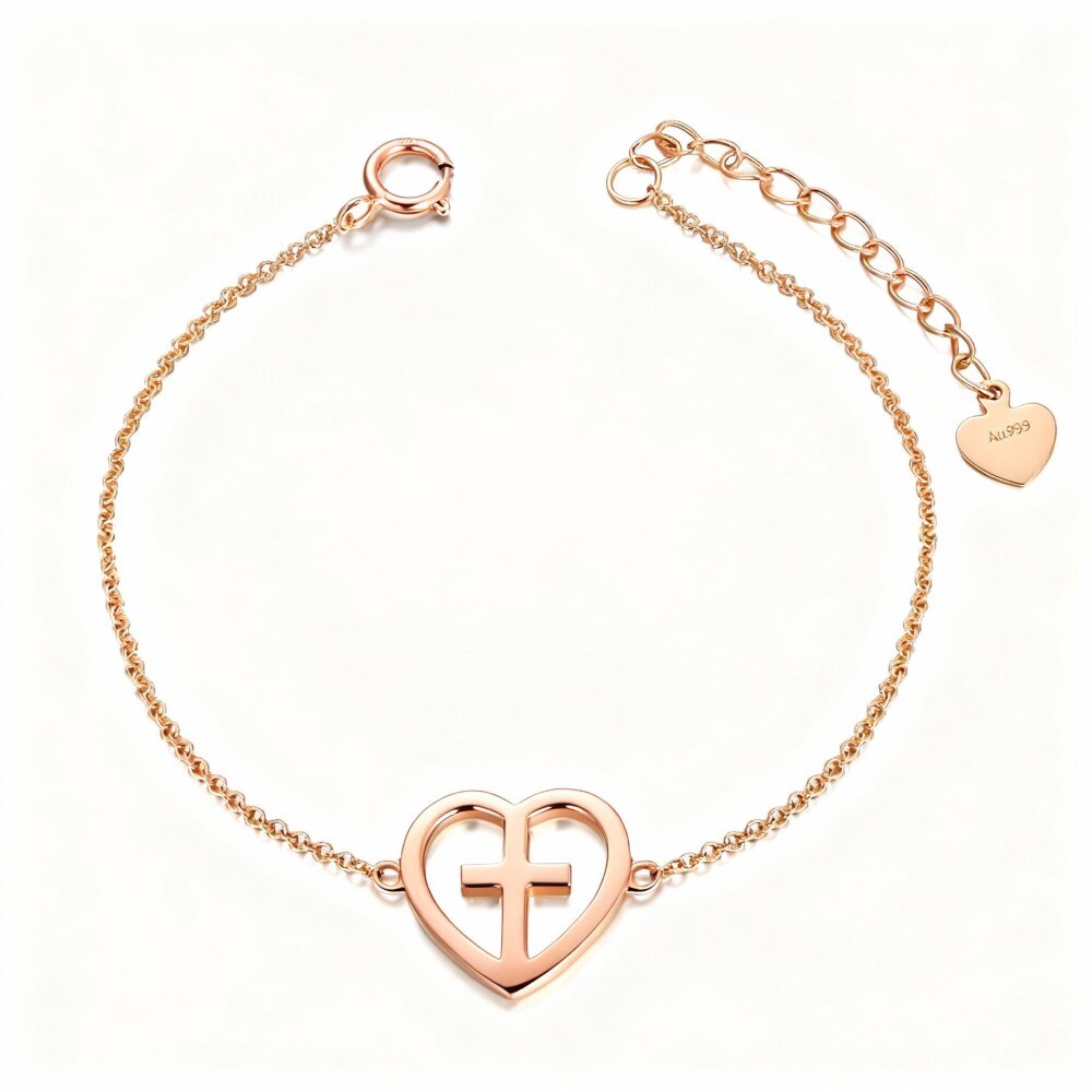 Esta exquisita pulsera de Oro Rosa de 10K presenta un colgante bellamente elaborado en forma de cruz y corazón, simbolizando la perfecta combinación de fe y amor. Diseñada pensando en las mujeres, añade un toque de elegancia a cualquier atuendo, ya sea para un día casual o un evento formal. El diseño minimalista asegura que esta pieza se pueda usar sola para una declaración sutil o apilada con otras pulseras para un look más elaborado. Su alta calidad de confección garantiza durabilidad, convirtiéndola en una adición preciada a tu colección de joyas. El acabado brillante del Oro Rosa realza su atractivo, lo que la convierte en un regalo perfecto para cumpleaños, aniversarios u otras ocasiones especiales. Abraza la elegancia y versatilidad de esta pulsera de colgante de cruz y corazón de 10K, y permite que exprese tu estilo y personalidad únicos.