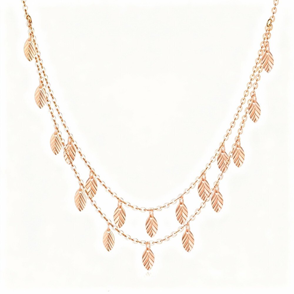 Descubre el encanto de nuestro collar de capas en Oro Rosa de 10K, una perfecta combinación de diseño inspirado en la naturaleza y elegancia moderna, creado para mujeres exigentes.