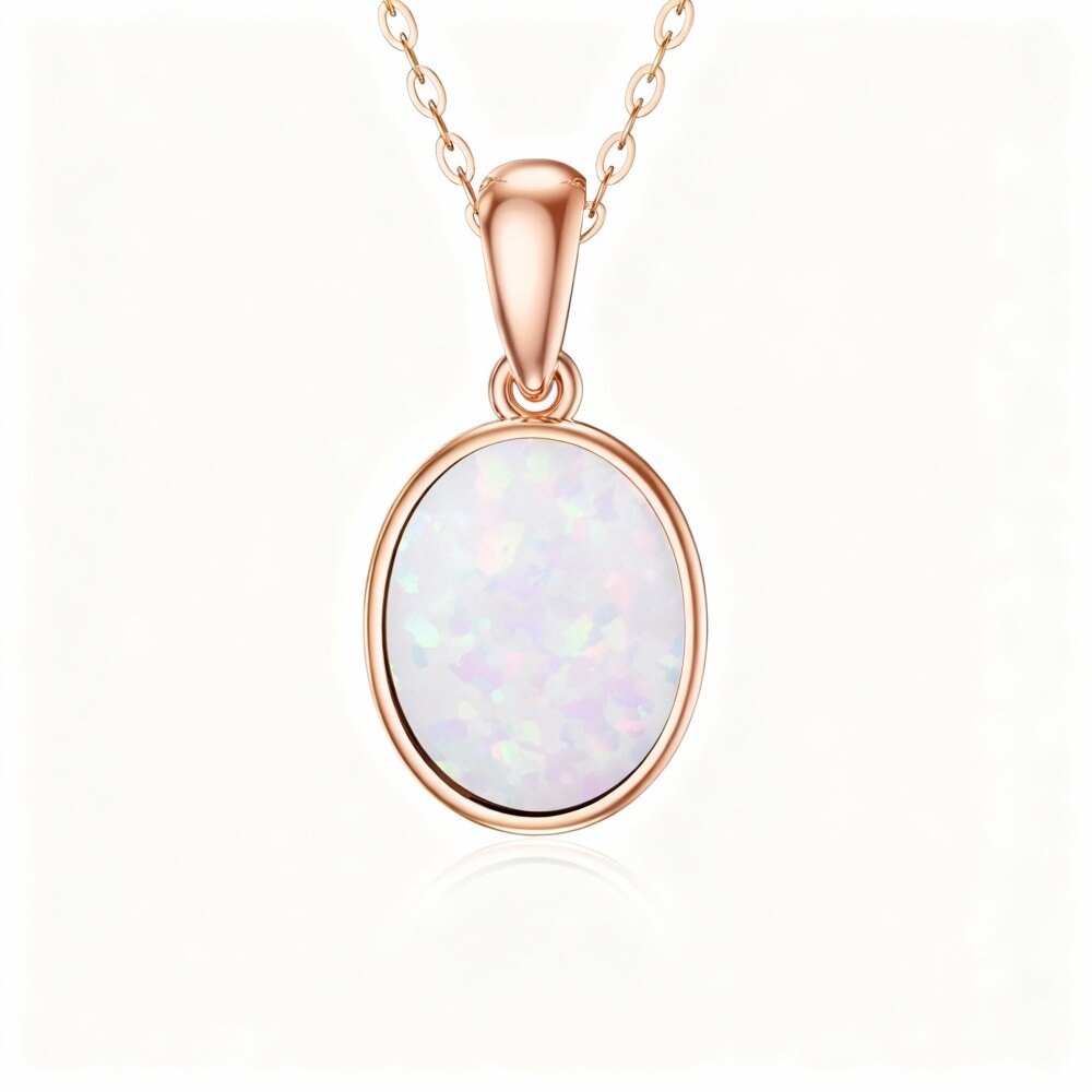 Descubre la esencia de la elegancia con nuestro exquisito collar de ópalo ovalado en Oro Rosa de 10K, perfecto para mujeres sofisticadas que aman la belleza atemporal.