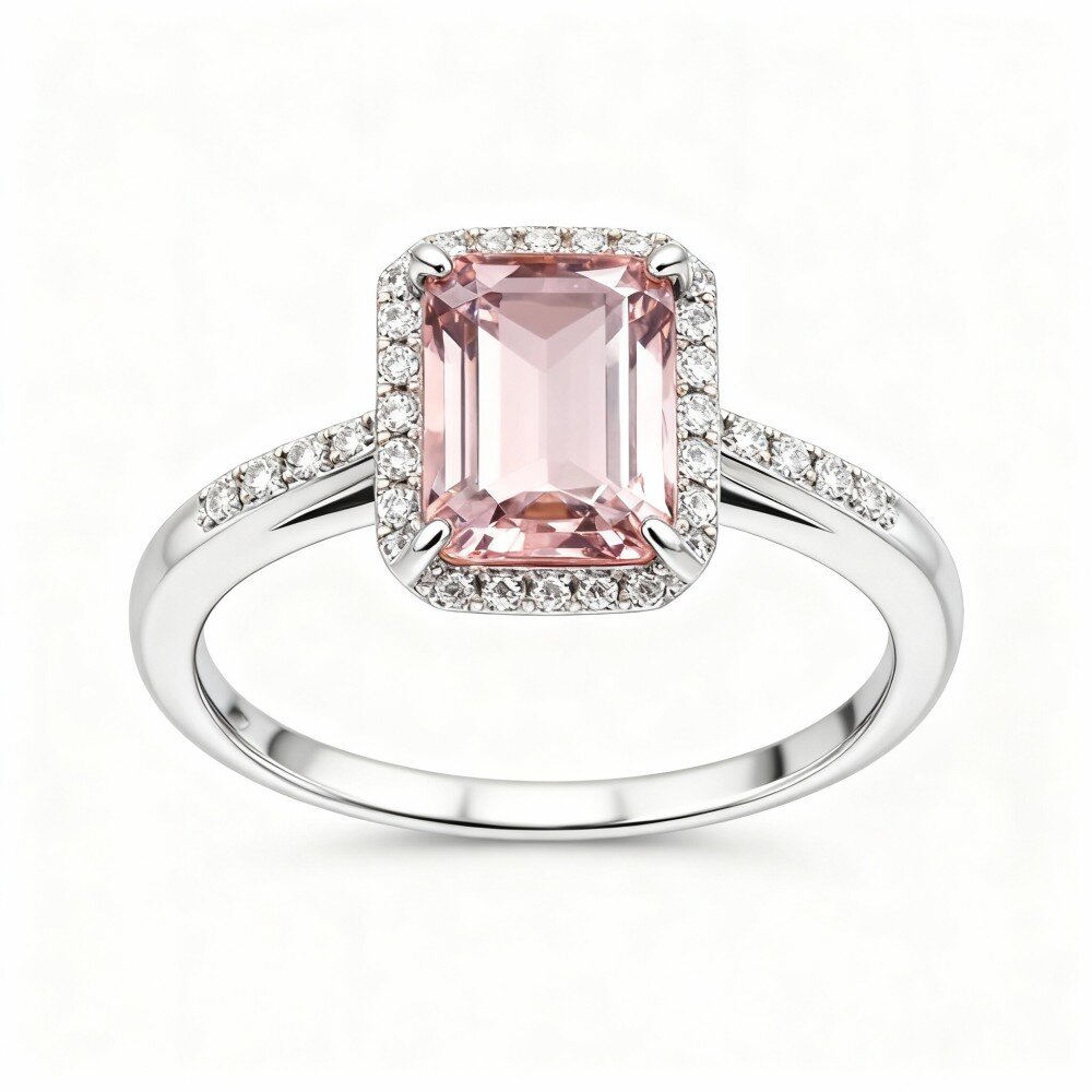 Este llamativo anillo no solo simboliza el amor, sino también una declaración de estilo. Los hermosos tonos rosados de la morganita, complementados con la vibrante esmeralda, crean un contraste cautivador. Su diseño de halo ofrece un aspecto lujoso que realza cualquier atuendo, convirtiéndolo en el accesorio perfecto para ocasiones especiales o para el día a día. Ideal para mujeres que aprecian la artesanía fina y la calidad excepcional, este anillo de compromiso promete conquistar corazones y crear recuerdos imborrables.