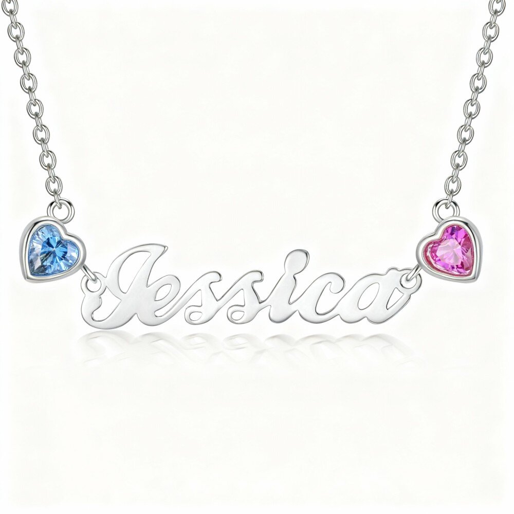 Explore nuestro impresionante collar colgante de corazón de Oro Blanco de 10 quilates, con piedras de nacimiento personalizadas, diseñado para mujeres que aprecian las joyas elegantes y únicas.