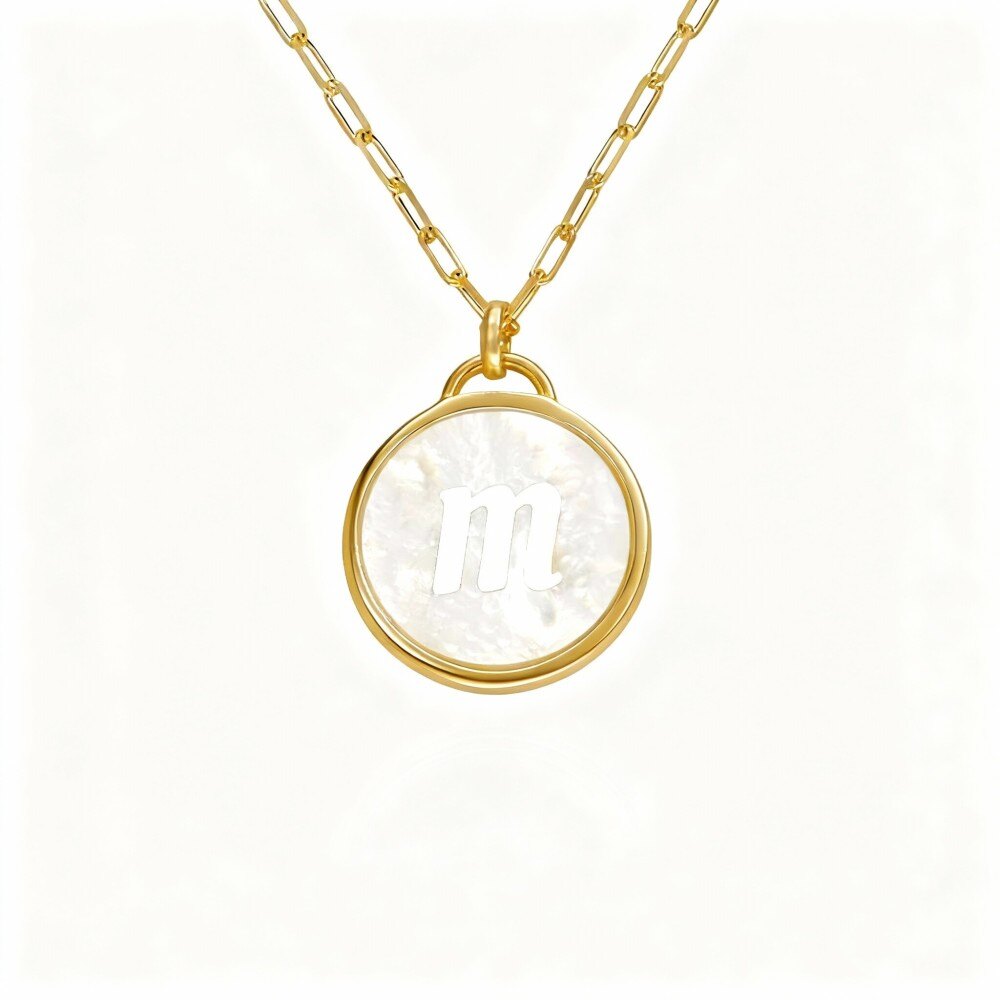 Eleva tu estilo con nuestro lujoso colgante de Oro 14K, con un deslumbrante nácar y una letra inicial personalizada, diseñado para la mujer moderna.