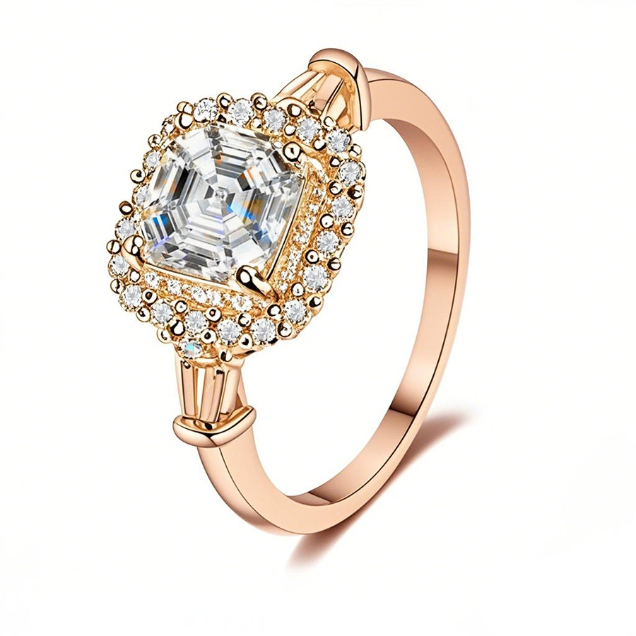 Descubra nuestro impresionante anillo de compromiso de oro de 14 quilates con un lujoso diseño de halo adornado con una brillante piedra central de moissanita de talla princesa. Este exquisito anillo, disponible en tonos de oro transparente y rosa, simboliza el amor y el compromiso, lo que lo convierte en la opción perfecta para las parejas que buscan celebrar su vínculo único.