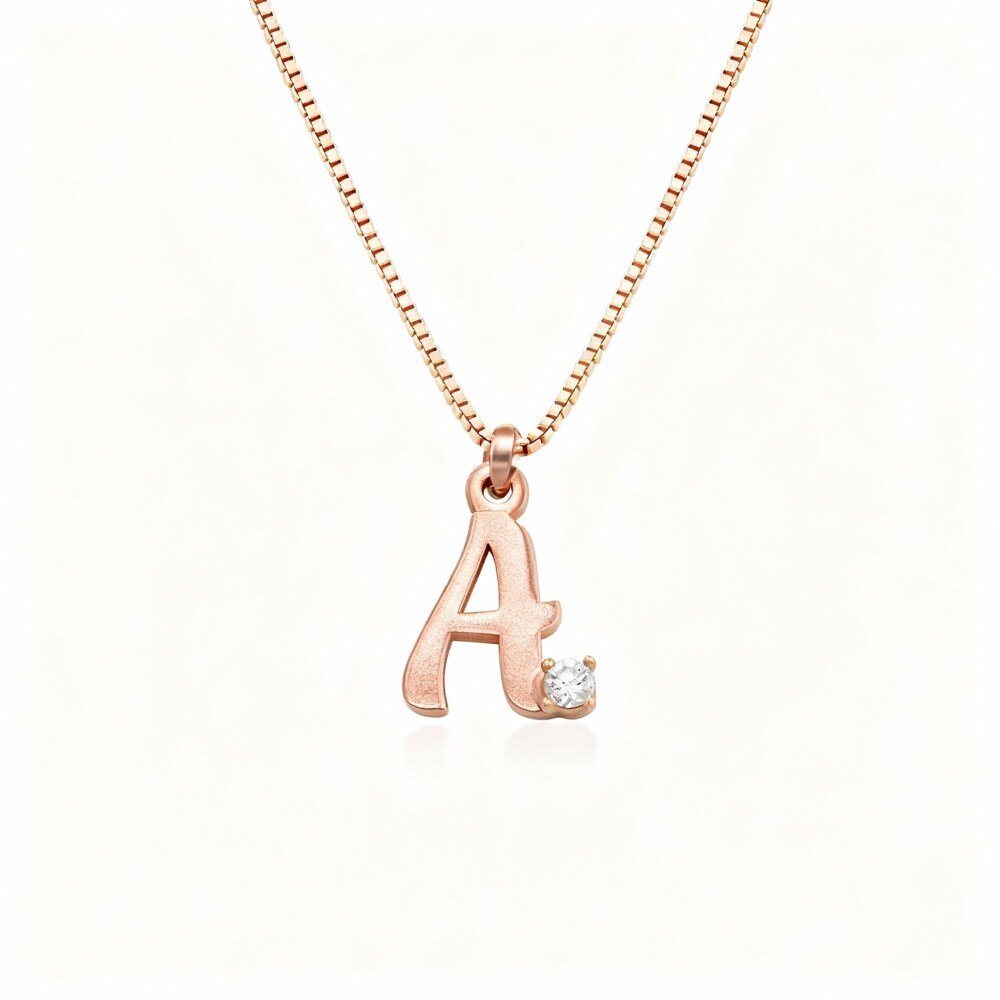 Descubre la elegancia de nuestro collar de Oro Rosa de 14K con un diamante creado en laboratorio y una letra inicial personalizable, ideal para mujeres modernas.