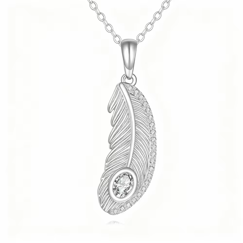 y manteniendo el orden al salir: Creado con Oro Blanco de alta calidad 14K, este collar con colgante luce un brillante motivo de pluma que simboliza la libertad y la belleza. El deslumbrante moissanita, conocido por su brillante resplandor, añade un toque de sofisticación mientras garantiza una elección libre de conflictos para consumidores conscientes. Diseñado especialmente para mujeres, este versátil collar pasa sin esfuerzo de looks informales a prendas formales, convirtiéndolo en el regalo perfecto para cumpleaños, aniversarios o simplemente para darte un capricho. ¡Acepta la elegancia con una pieza que refleja tanto estilo como significado!