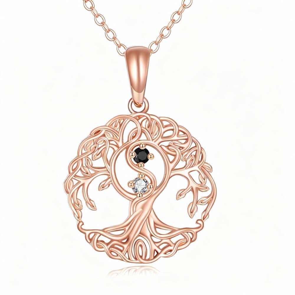 Realza tu elegancia con nuestro hermoso collar colgante de Oro Rosa de 18K que presenta un impresionante diseño del árbol de la vida en zirconia cúbica, perfecto para mujeres que valoran la belleza atemporal.