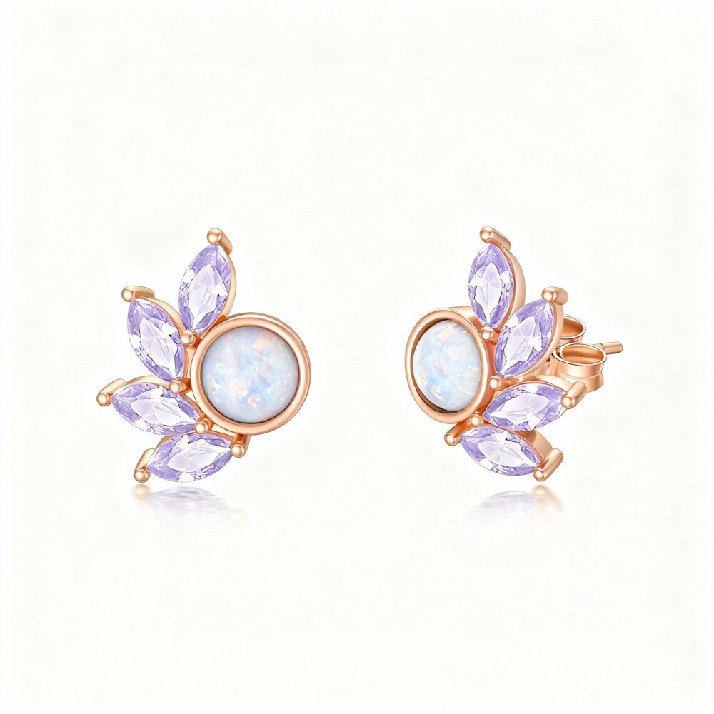 Eleva tu elegancia con nuestros impresionantes pendientes redondos de ópalo en Oro Rosa de 18K, diseñados exclusivamente para mujeres que aprecian la belleza atemporal y el estilo sofisticado.