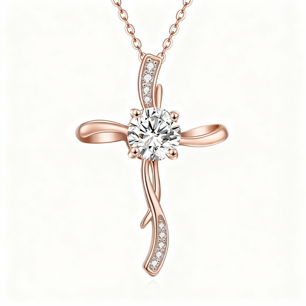 /18k-rose-gold-round-cut-moissanite-cross-pendant-necklace-p98867080