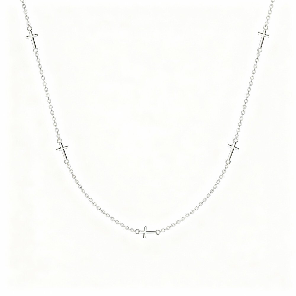 Nuestra cadena con colgante de cruz en Oro Blanco de 18K encarna sofisticación y gracia, presentando una cruz meticulosamente elaborada que simboliza la fe y la elegancia. Hecha de Oro Blanco de alta calidad, esta cadena está diseñada para mujeres que aprecian las cosas finas de la vida. Su diseño minimalista permite combinarla fácilmente con cualquier atuendo, ya sea casual o formal, lo que la convierte en un accesorio versátil para cualquier ocasión. El Oro Blanco brillante refleja la luz de manera hermosa, asegurando que destaque mientras se mantiene discreto. Ideal para regalar, esta cadena es perfecta para celebrar momentos especiales como aniversarios, graduaciones o hitos religiosos. Con su encanto duradero, la cadena con colgante de cruz en Oro Blanco de 18K es más que solo joyería; es una pieza significativa que lleva un significado personal y estilo. Regálate o regala a un ser querido esta pieza exquisita que realza cualquier colección de joyas, prometiendo belleza duradera y atractivo atemporal.